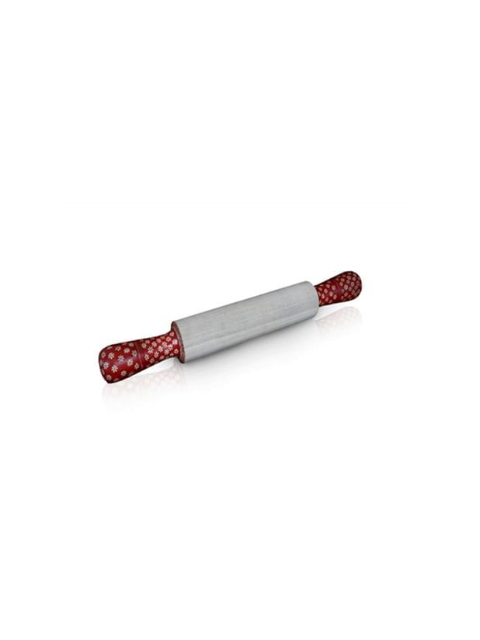 Rolling pin, cylinder shape, Wadang wood, ceprik motif batiked, red color, aqua lacquer coating.