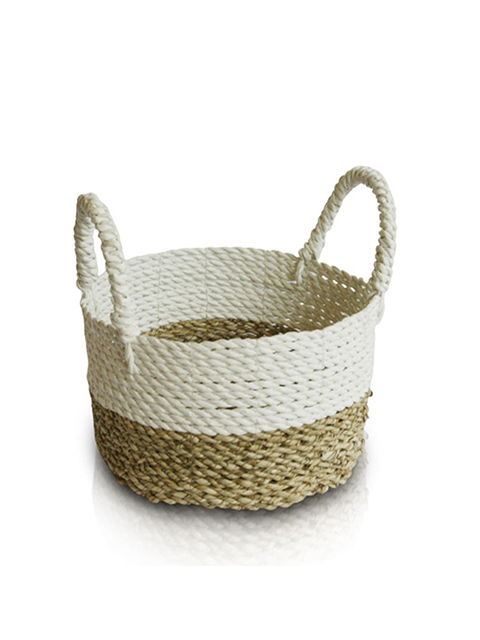 By using pandanaus rope basket, you can place various objects without having to hide them because the appearance of this basket can be a decorative addition in the room. This basket is made from Pandanaus rope, sintetic rope material, natural and white color.