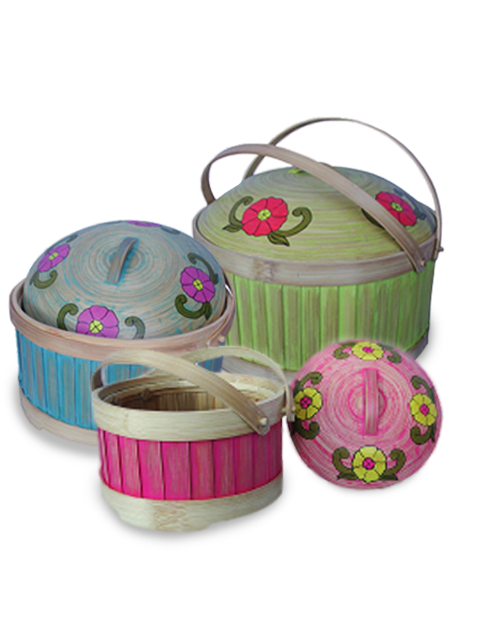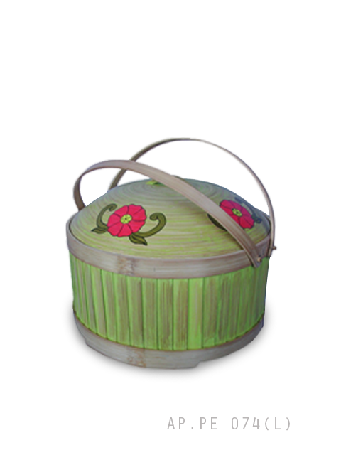 Apikri handmade Bamboo container food,2 handles,flower motif,set 3