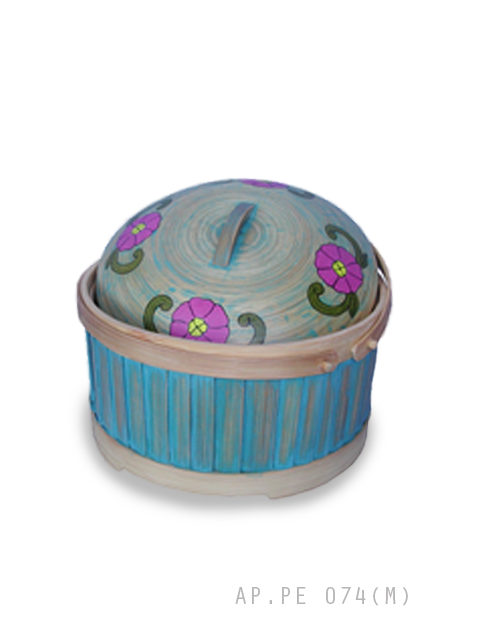 Bamboo container food,2 handles, flower motif,blue,medium.