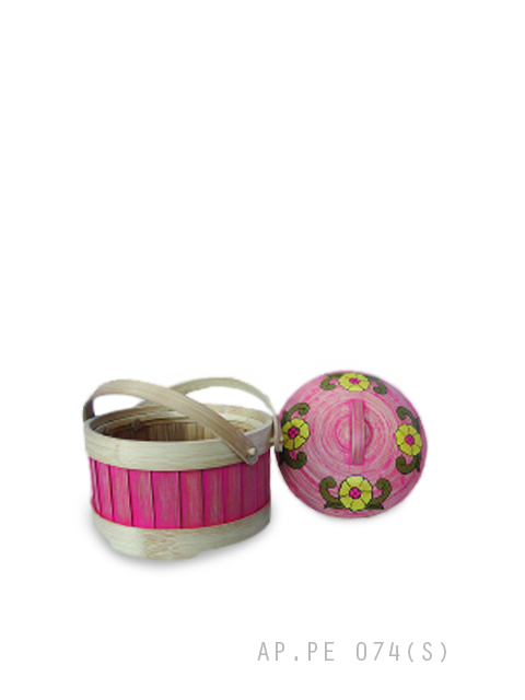 Bamboo container food,2 handles,flower motif,red,small